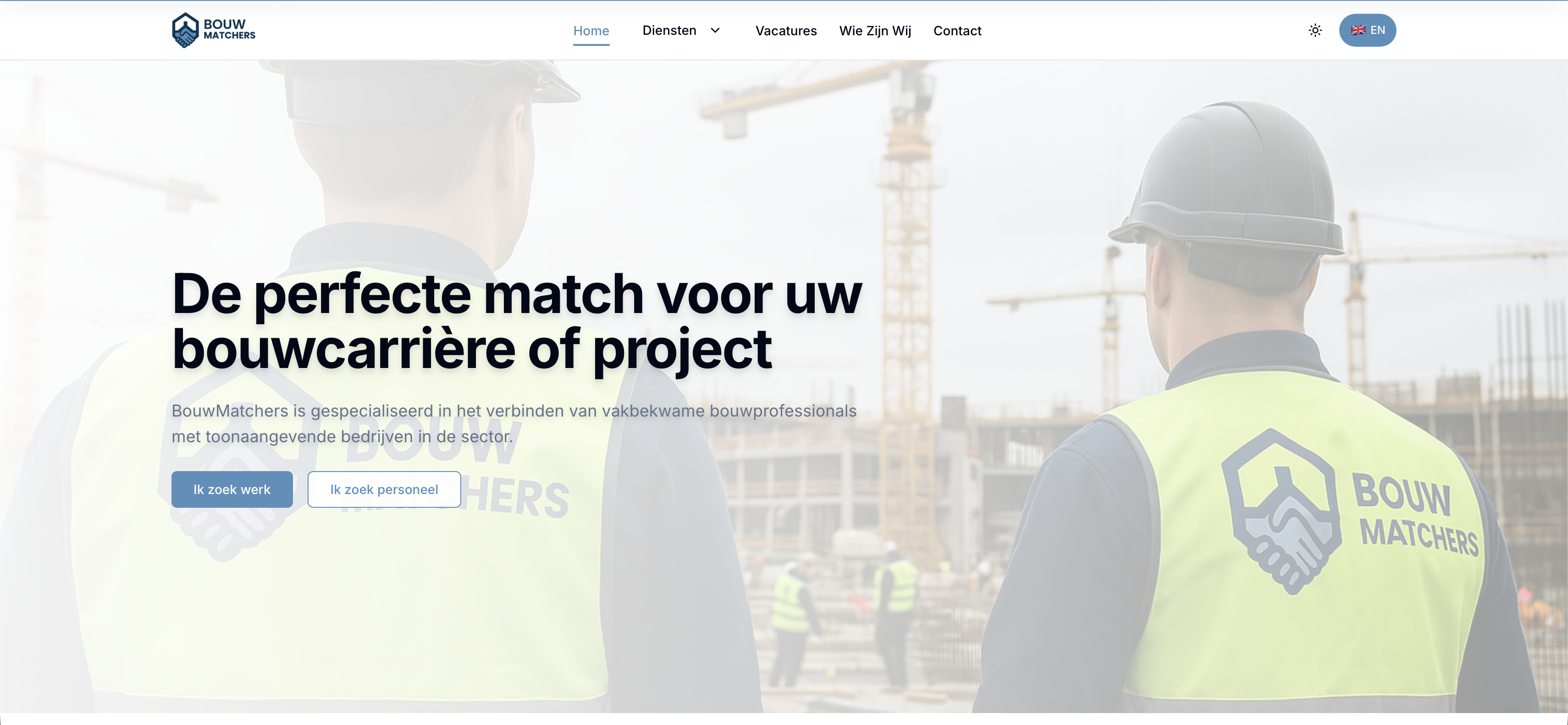 BouwMatchers B.V. is een toonaangevend recruitmentplatform dat zich richt op de bouwsector. Ze wilden een oplossing ontwikkelen die bouwprofessionals efficiënt verbindt met bouwbedrijven. De uitdaging was om een gebruiksvriendelijk en tweeledig platform te creëren dat zowel in het Nederlands als Engels toegankelijk is.